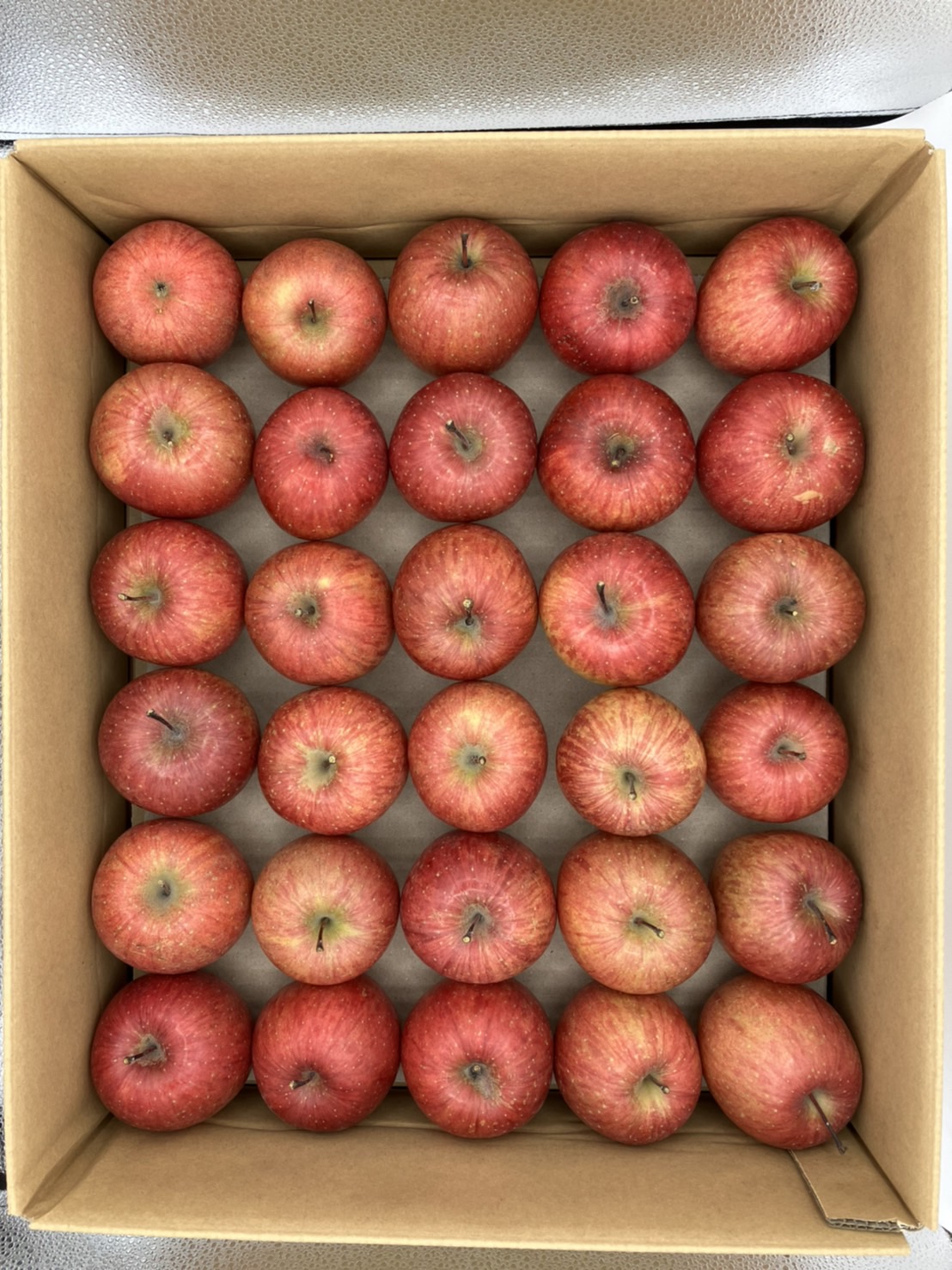年末に収穫した小玉のサンふじを蔵で保管し酸味をまろやかにします。 小玉のため味が濃厚でとても美味しいしあがりになっております